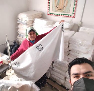 Nos dedicamos a la producción de ropa hospitalaria y sábanas de alta calidad, comprometidos con el bienestar de los pacientes y la comodidad del personal médico, asegurando productos que cumplen con los más altos estándares de higiene y durabilidad."